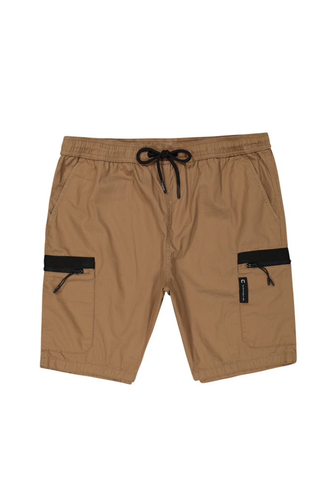 These coffee cargo shorts bring both style and function. With an elasticated waistband, adjustable drawcords, multiple pockets, and exposed zippers, they’ll have you looking fresh while keeping everything you need within reach.