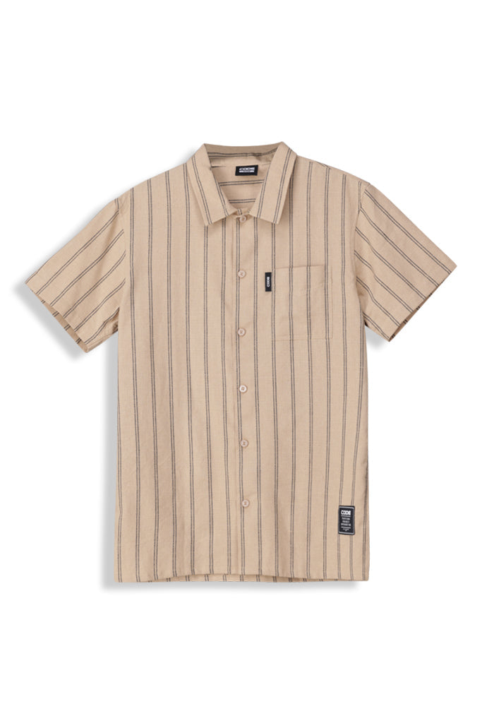 Stay breezy in this ecru relaxed fit shirt. Cotton-viscose blend keeps it soft, while the short sleeves and button closure keep it casual. Branded trims finish off the easy, everyday flex.