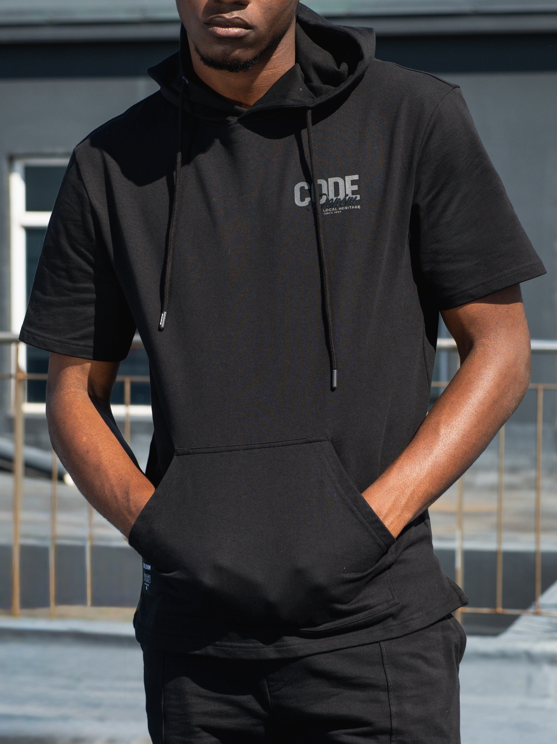 Cool and laid-back. This hooded short sleeve sweat top features a brushed fleece interior, cotton-blend comfort, and branded trims—perfect for relaxed, everyday wear.