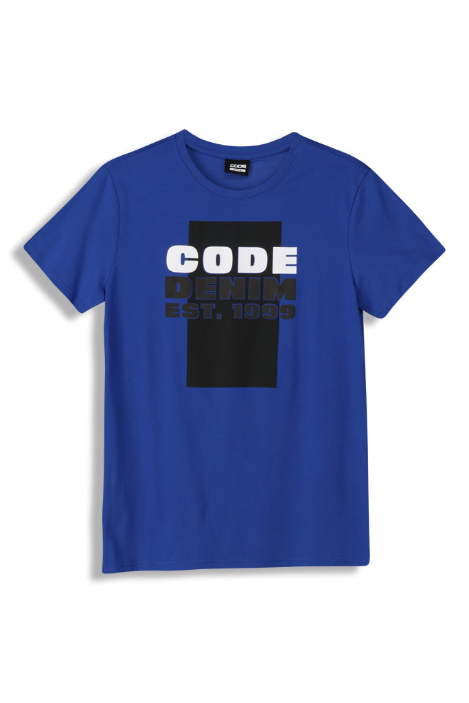A striking choice in imperial blue. This 100% cotton crew neck tee features a ribbed neckline, standout print, and slim fit for a fresh, casual edge that works every day.